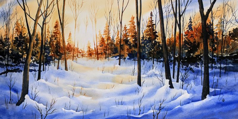 Sunset in the Winter Woods #2, 9¾ x 16¾ [framed 16 x 26] $500